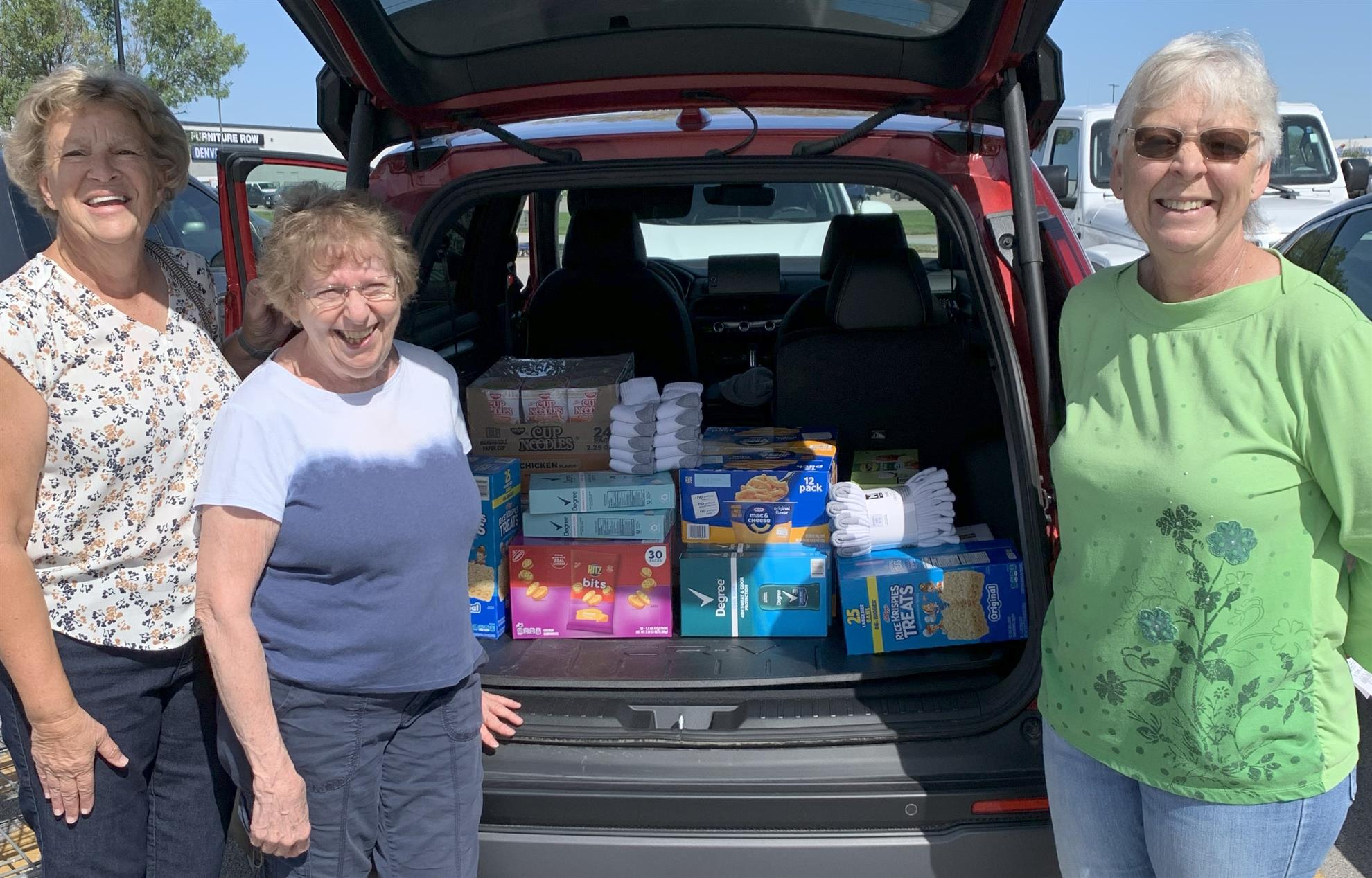 At the beginning of the 2024-2025 budget year the YCPO Committee designated $200 to purchase priority items for Lincoln East High School's Spartan Village and Pantry. Marilyn Scheinost received the "items needed" list from Tami Rembolt, East High Social Worker, which included snacks (granola bars, fruit snacks, breakfast bars, Rice Krispie bars, etc.), macaroni and cheese cups, soup in a cup, canned fruit, tall white socks, and men's and women's deodorant. Marilyn Scheinost, Mindy Vyhnalek and Cheryl Ross purchased the items requested and filled the trunk of Marilyn's car so Marilyn could deliver the items to East High Social Workers Tami Rembolt and Danielle Swanson on August 25th.