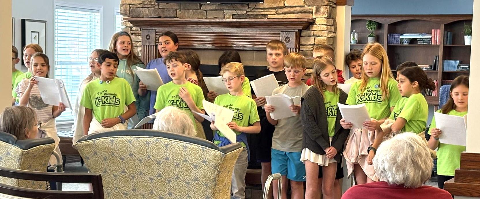 In March the Pyrtle K-Kids visited the Country House, an assisted living facility near Pyrtle Elementary School. The members sang several songs for the residents, like “My Darling Clementine,” “Home on the Range”, “My Bonnie”, and “Yankee Doodle”. Then they visited individually with the residents and passed out artwork with positive messages which they had created in Art Class.