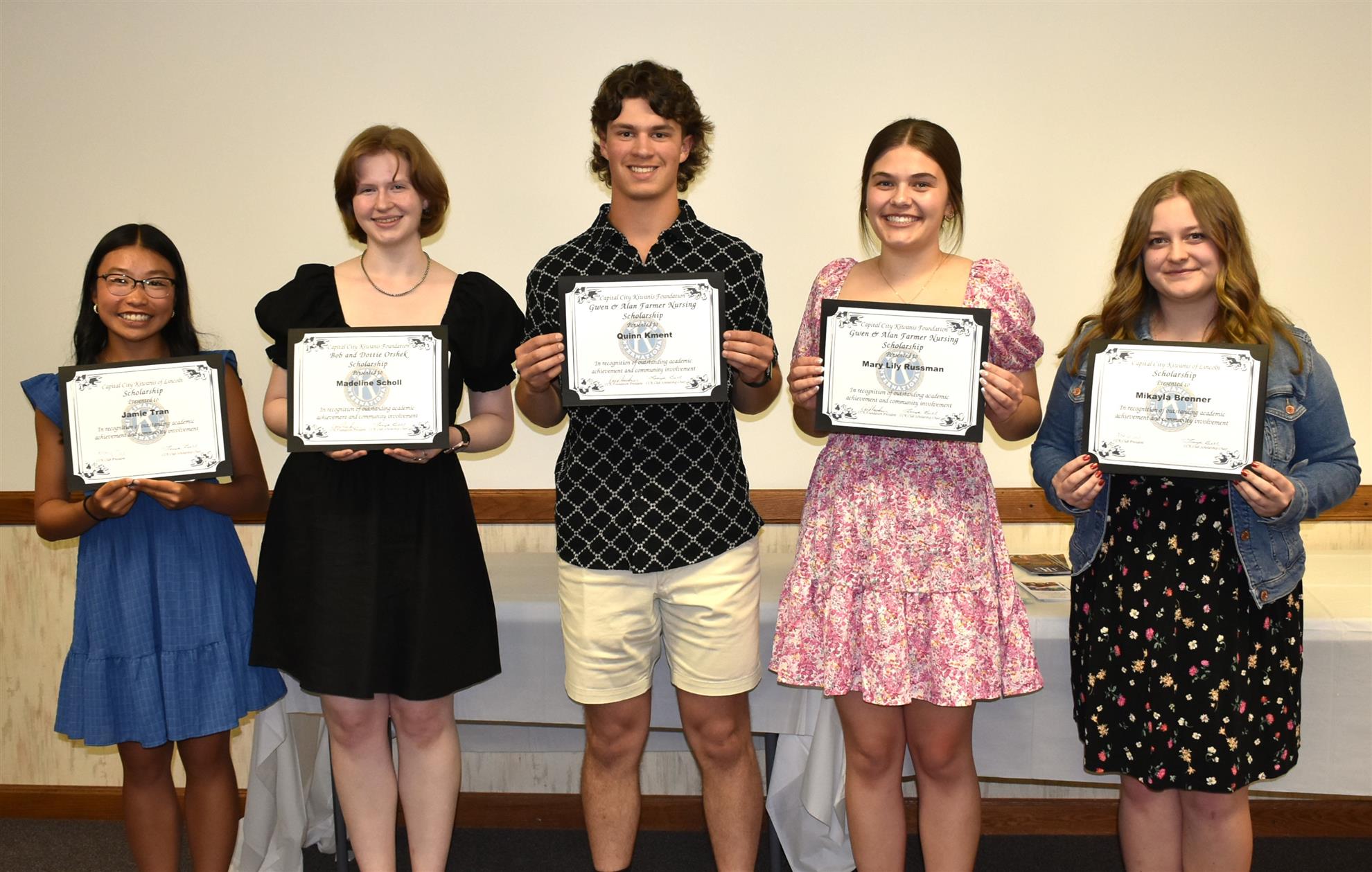 The Kiwanis Club of Lincoln-Capital City and the Capital City Kiwanis Club Foundation presented $1000 scholarships to five Lancaster County graduates at their meeting on April 22nd. The soon-to-be graduates and their families were invited to attend the scholarship presentations and the recipients had the opportunity to share their future educational plans with everyone.