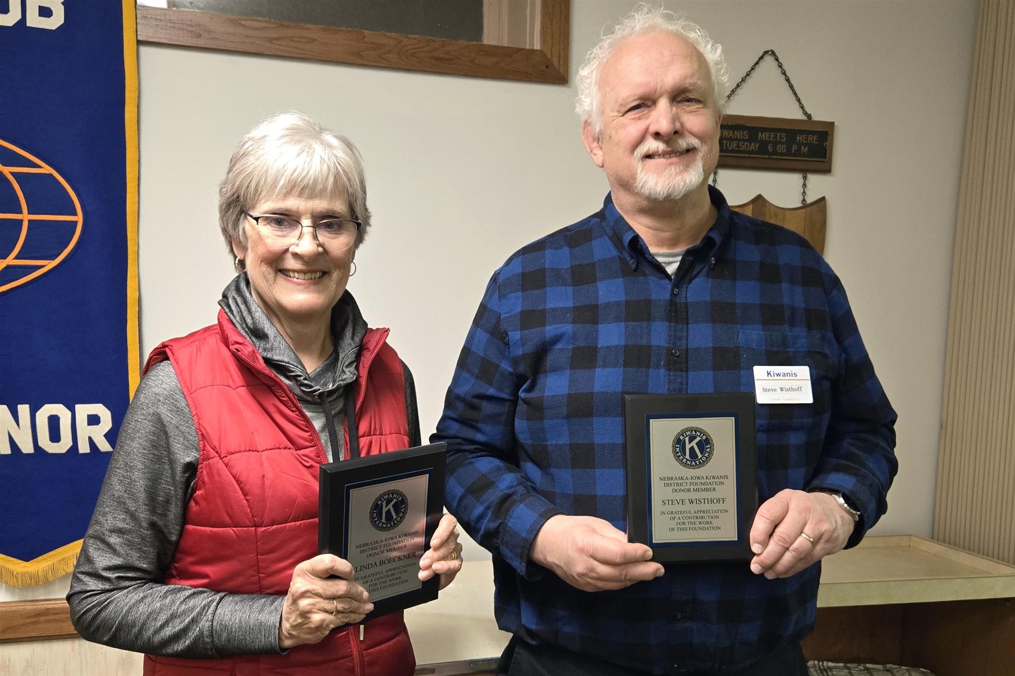 Awards were given to Linda Boeckner and Steve Wisthoff for their time as president of the Capital City Kiwanis Club. A donation was made to the Nebraska-Iowa District foundation in their honor.
