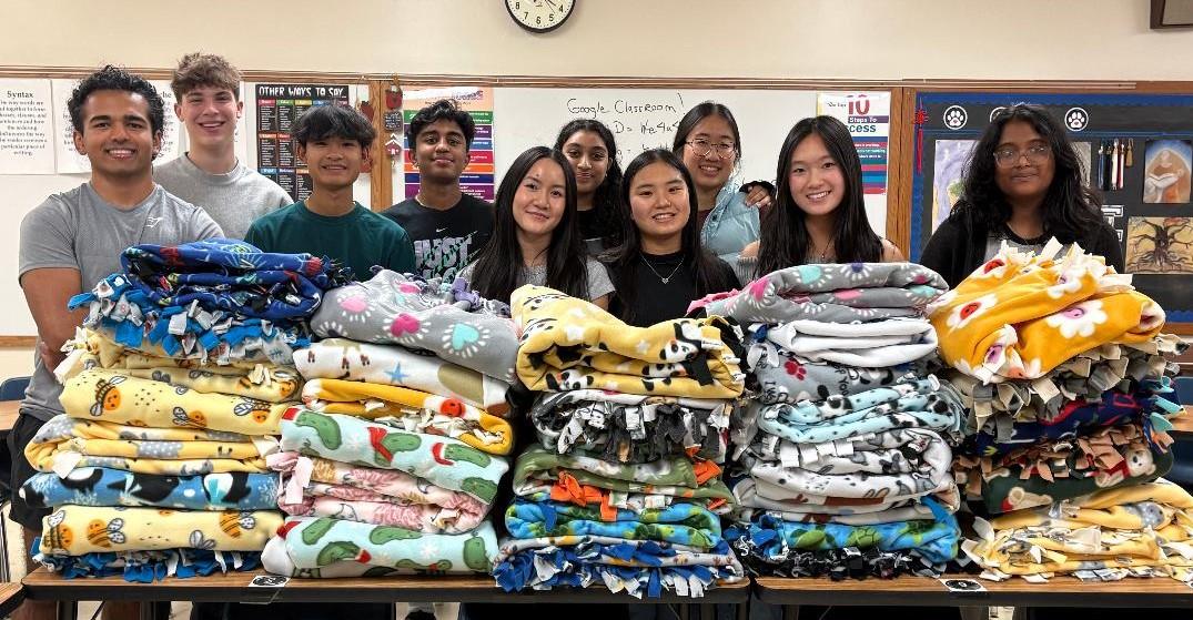 It has been a productive semester for the East High Key Club! Their members worked on fleece blanket project during meetings in December and delivered 20 completed blankets to Cedars Youth Services and 20 to Peoples City Mission. December 14th members volunteered at Santa’s Workshop/Wrapping party at the Peoples City Mission’s Help Center. They added 82 more decorated MOW bags bringing their total to 452 for the semester! On December 20 they along with Southeast Key Club members, they collected money for Food Bank at the East High-Southeast basketball game. They collected $51 and 2 boxes of pasta. In addition to all their service this school year, they are busy preparing and building for tomorrow. The club received a $1400 grant award from the Youth Opportunities Fund which will be used to buy fleece for the on-going blanket making project. They raised $1650 by volunteering at Roca Berry Farm and the Halfsy Marathon. And five non-district board students were selected to serve on NE-IA Key Club District committees!