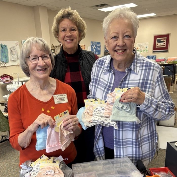 On December 10th, Capital City Kiwanis member, Mindy Vyhnalek, delivered 56 babies caps to the Sewing for Babies organization. Usually this is the time of year that our club would collect baby socks for the layettes this group makes for those who need assistance and we have helped to meet that need for many years. However, due to such a successful sock drive last holiday season, the sewing group did not need any socks! (Last year we delivered 966 pairs of socks which will last them about 2 years!) They were still in need of some caps and onesies this year (since they struggle to find a good price on the cotton knit fabric that is used) so we switched the donation to caps this year and plan on adding to the effort in January according to the YCPO committee. Pictured: Mindy Vyhnalek & SFB representatives Sandy Ready & Loraine Harnett)